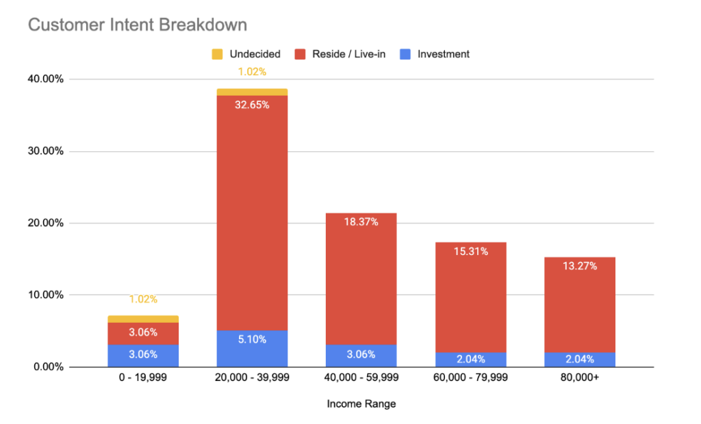 وعلى الطرف الأعلى من شريحة الدخل، لا تتجاوز نسبة المشترين الذين يتقاضون دخلًا شهريًا يتراوح بين 60 ألف و80 ألف درهم أو أكثر والذين يخططون لشراء عقارات استثمارية 2.04% فقط. في المقابل، ترتفع هذه النسبة إلى 5.1% بين المشترين ضمن شريحة الدخل التي تتراوح بين 20 ألف و40 ألف درهم، ما يعكس نشاطًا استثماريًا أكبر نسبيًا لدى فئة الدخل المتوسط.