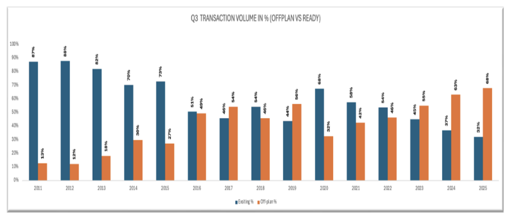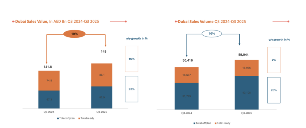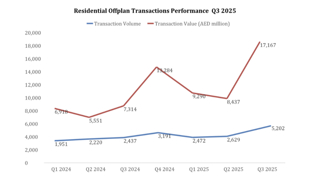 على غرار أبوظبي، جاء الأداء القياسي لسوق دبي العقاري في الربع الثالث من عام 2025 مدفوعاً بشكل أساسي بقطاع العقارات على المخطط، الذي يواصل تحفيز توجهات الاستثمار المستقبلية.
